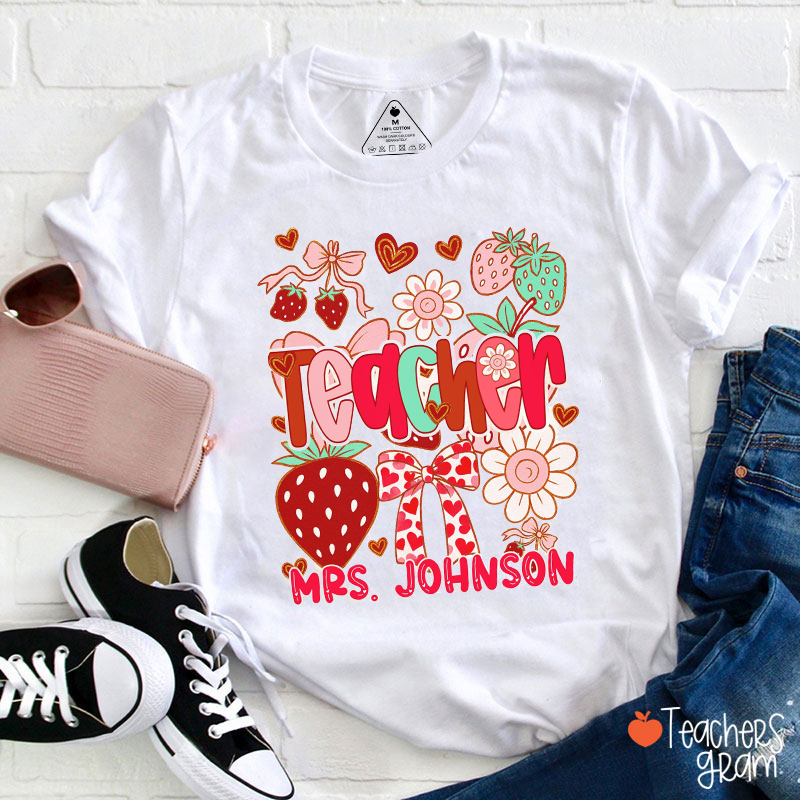 Personalized Pink Illustration Teacher And Name Teacher T-Shirt