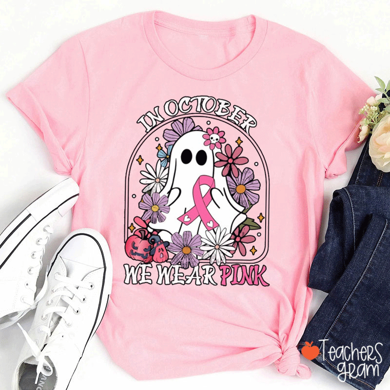 In October We Wear Pink Breast Cancer Awareness Teacher T-Shirt
