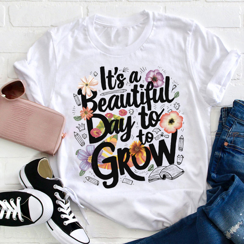 Flower It's A Beautiful Day To Grow Teacher T-Shirt