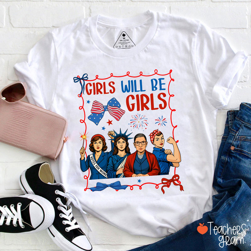 Girls Will Be Girls Independence Day Teacher T-Shirt