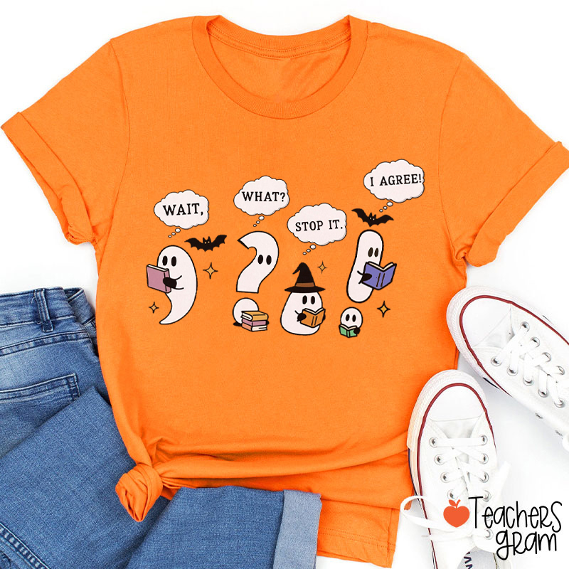 Wait What Stop It I Agree Halloween Punctuation Teacher T-Shirt
