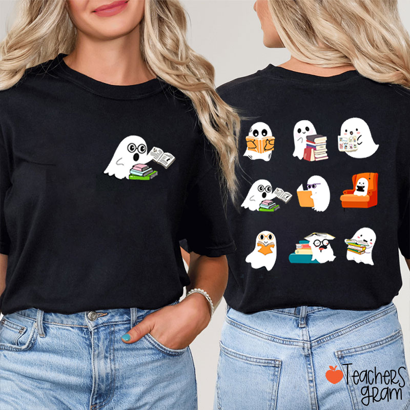 Cute Reading Ghosts Teacher Two Sided T-Shirt