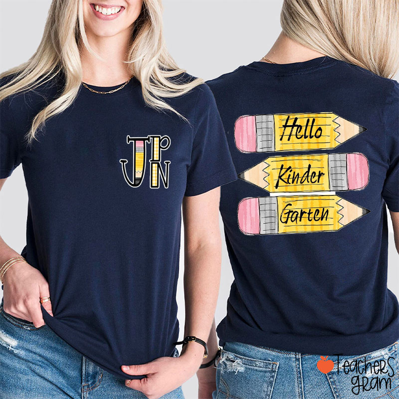 Personalized Name And Grade Pencils Teacher Two Sided T-Shirt