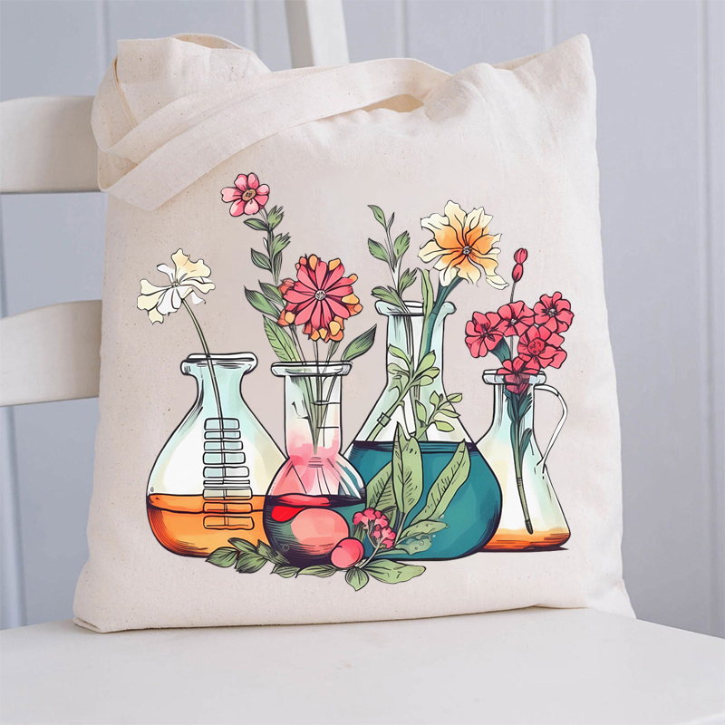 Floral Beakers Chemistry Lab Teacher Tote Bag