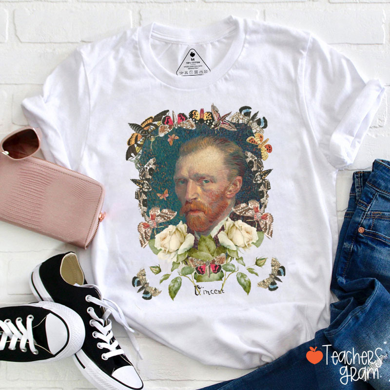 Artist Self Portrait Surrounded By Flowers Teacher T-Shirt