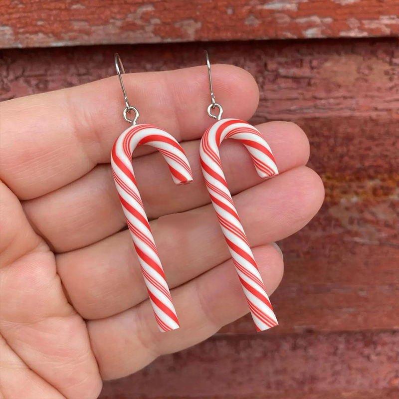 Candy Cane Polymer Clay Teacher Earrings