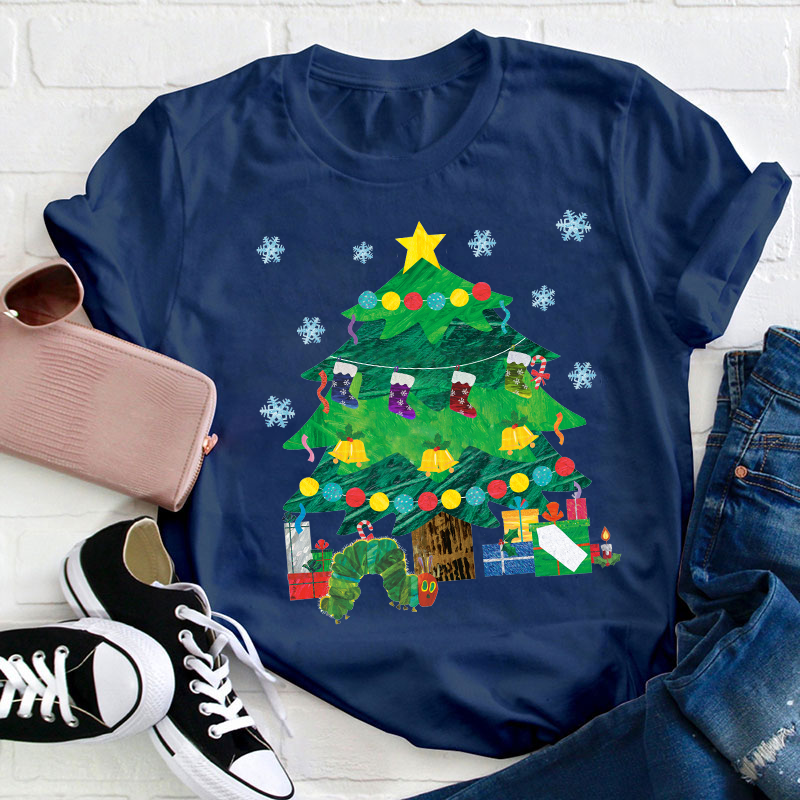 Caterpillar Under The Christmas Tree Teacher T-Shirt