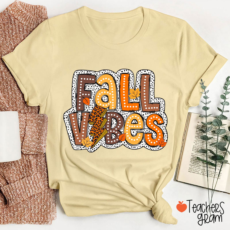 Fall Vibes Leopard Lightning Teacher T-Shirt