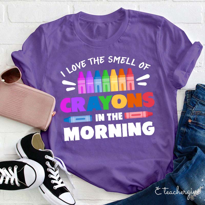 I Love The Smell Of Crayons In The Morning Teacher T-Shirt