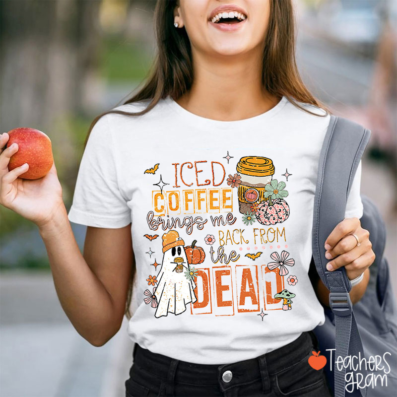 Iced Coffee Brings Me Back From The Dead Teacher T-Shirt
