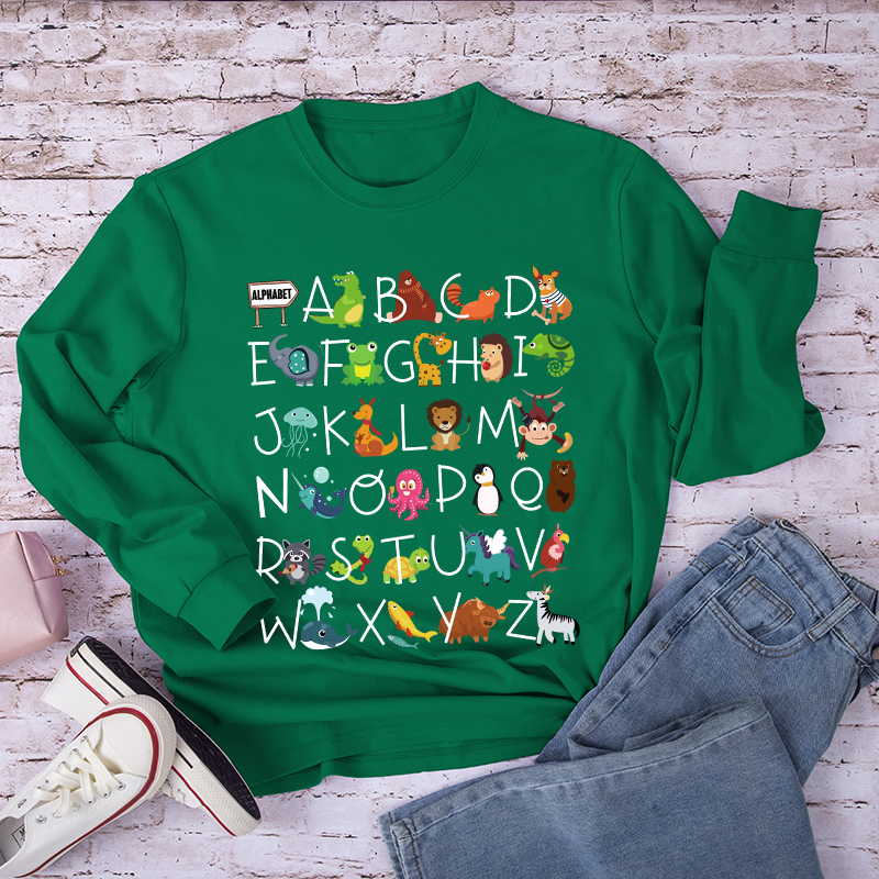 Interesting English Alphabet And Animals Teacher Long Sleeve T-Shirt
