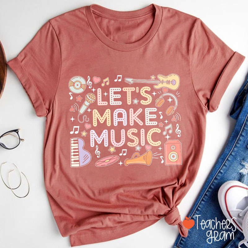 Let's Make Music Cute Musical Instrument Icons Teacher T-Shirt
