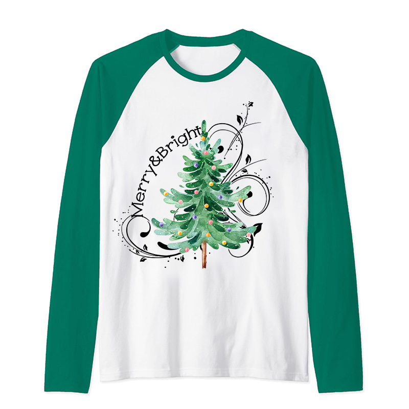 Merry And Bright Christmas Teacher Raglan Long Sleeve T-Shirt