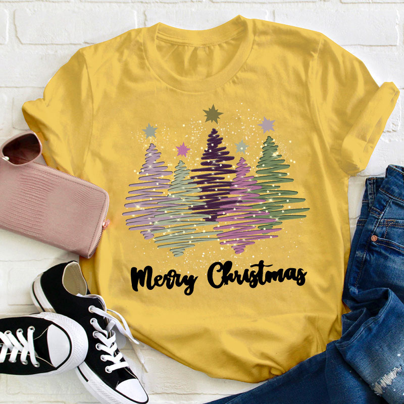 Merry Christmas Colorful Trees Teacher T-Shirt