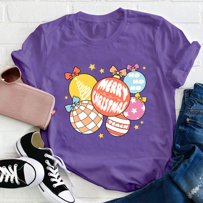 Merry Christmas Light Balls Hohoho Teacher T-Shirt