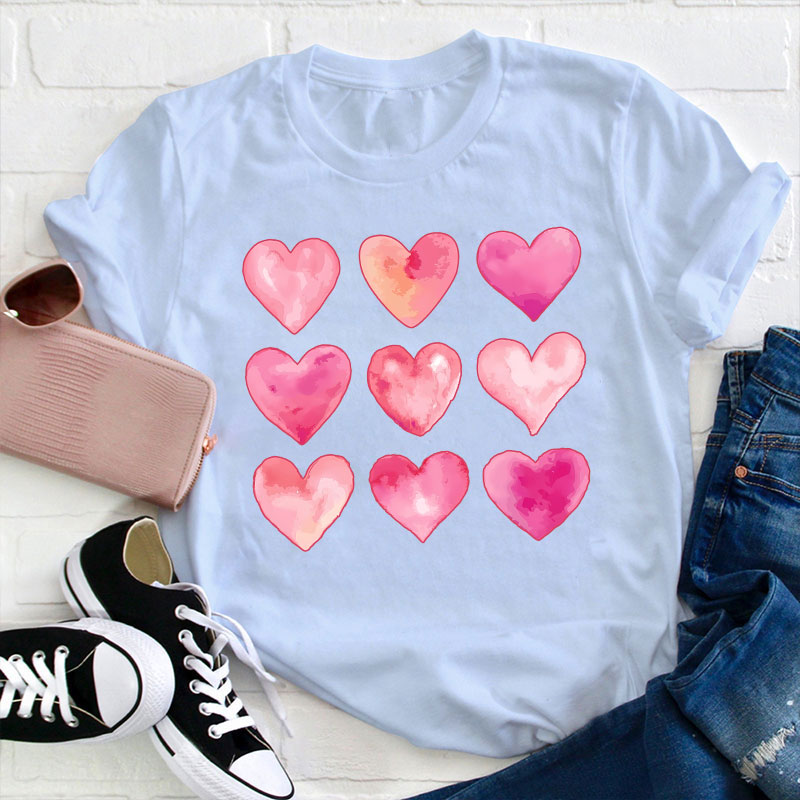 Nine Pink Hearts Teacher T-Shirt