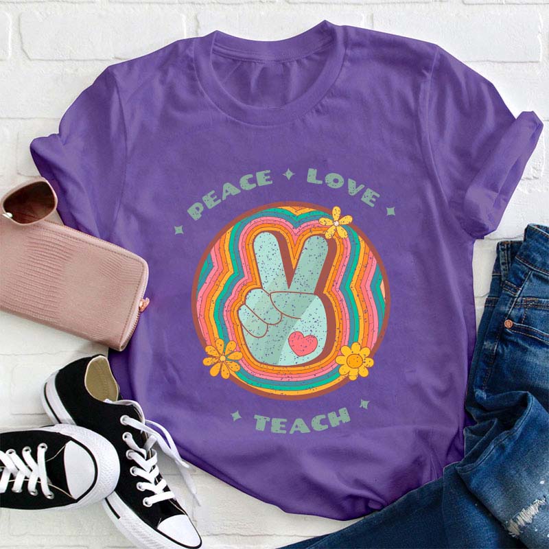 Peace Love Teach Teacher T-Shirt