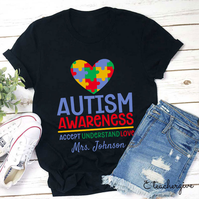 Personalized Autism Awareness Accept Understand Love Teacher T-Shirt