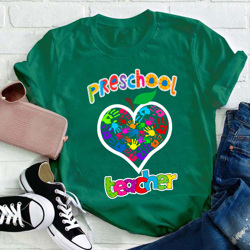 Personalized Colorful Little Hands Form A Love Heart Teacher T-Shirt