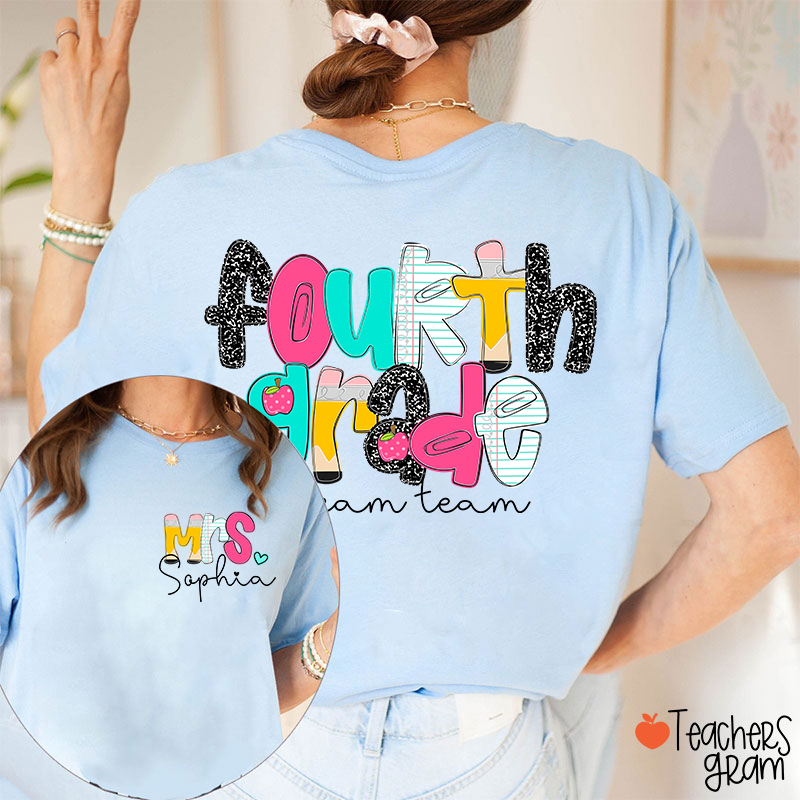 Personalized Grade And Name Pencil Notebook Teacher Two Sided T-Shirt