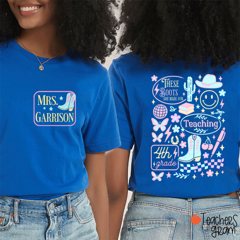 Personalized Grade And Name These Boots Are Made For Teaching Teacher Two Sided T-Shirt