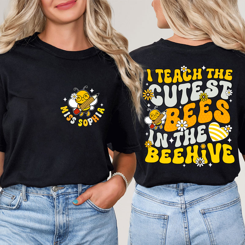 Personalized I Teach The Cutest Bees In The Beehive Cute Bee Teacher Two Sided T-Shirt