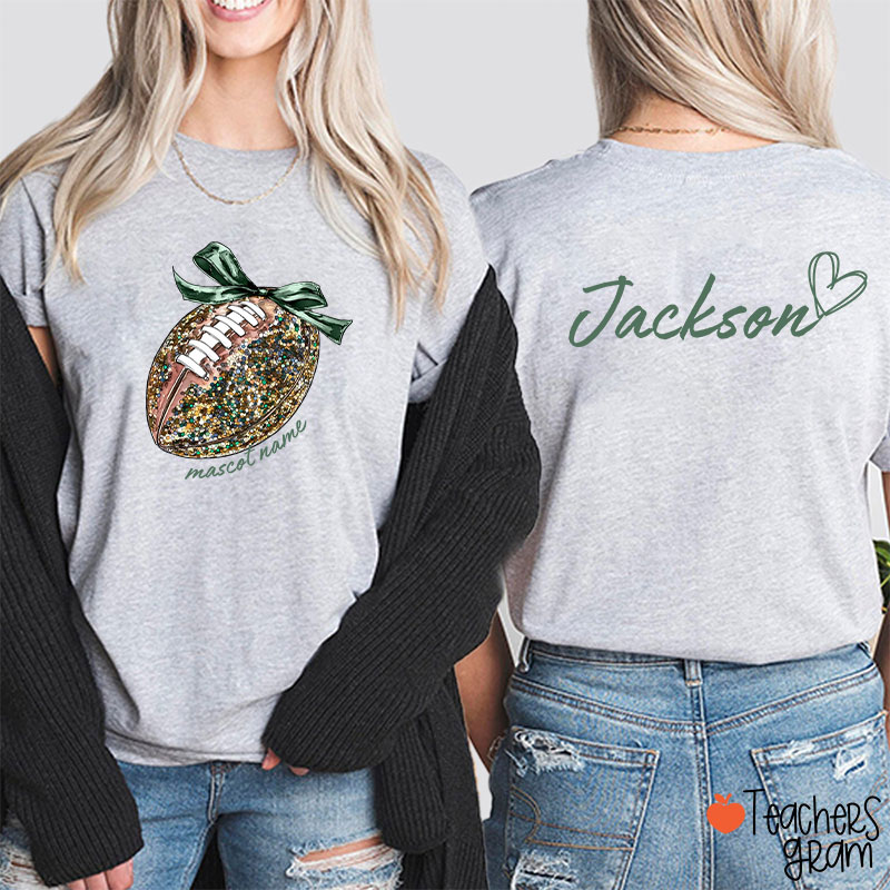 Personalized Mascot And Sport Faux Glitter Coquette Bow Teacher Two Sided T-Shirt
