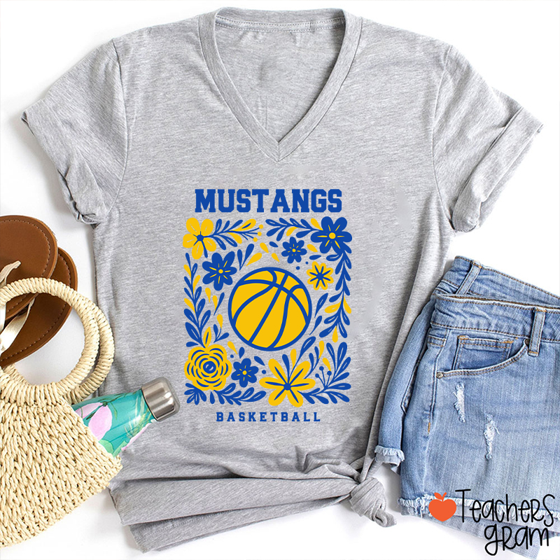 Personalized Mascot And Sport Flowers Teacher Female V-Neck T-Shirt
