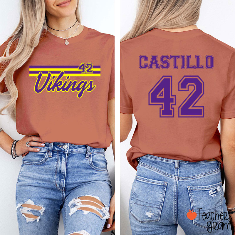 Personalized Mascot Contrast Color Line Design Teacher Two Sided T-Shirt