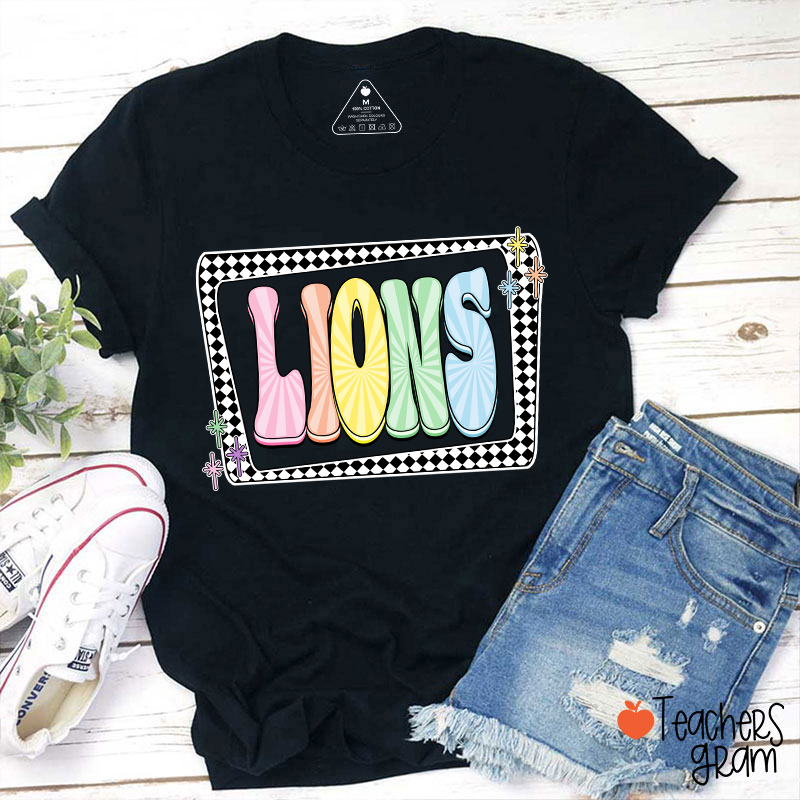 Personalized Mascot Pastels Checkerboard Teacher T-Shirt