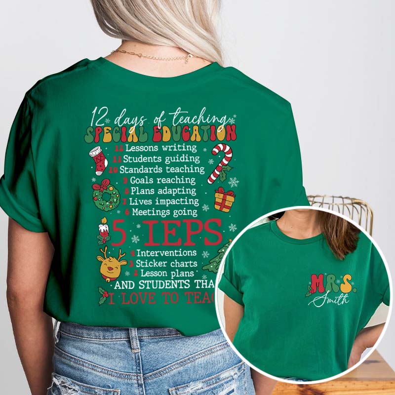 Personalized Name 12 Days Of Teaching Teacher Two Sided T-Shirt