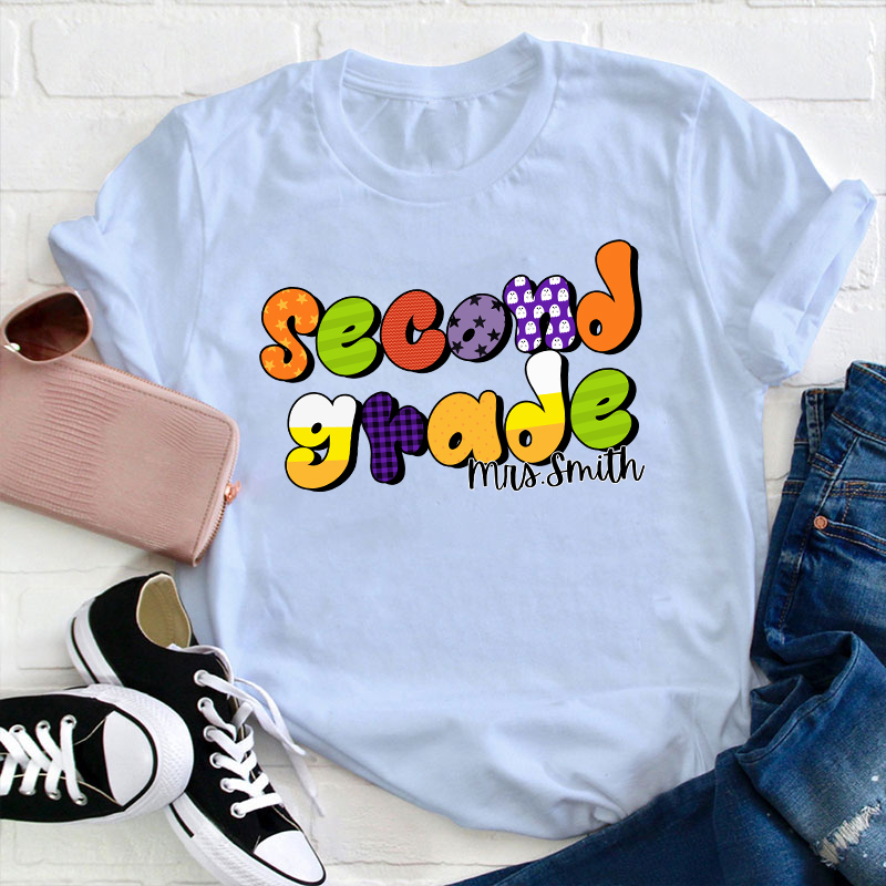 Personalized Name And Grade Happy Halloween Teacher T-Shirt