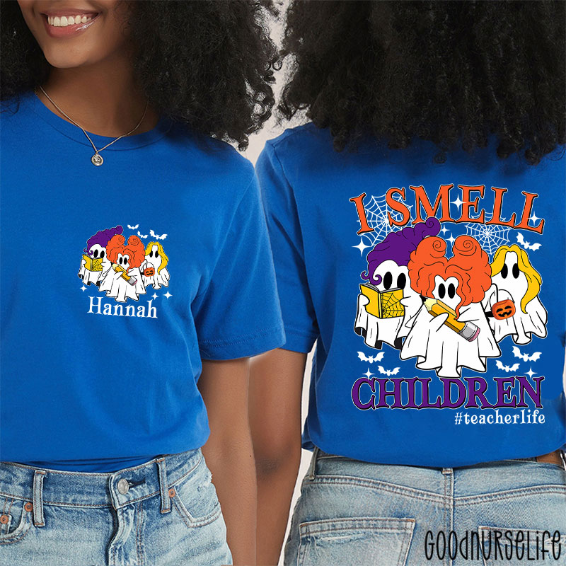 Personalized Name And Hashtag I Smell Children Teacher Two Sided T-Shirt