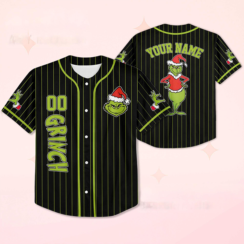 Personalized Name And Number Green Guy With Santa Hat Teacher Baseball Jersey