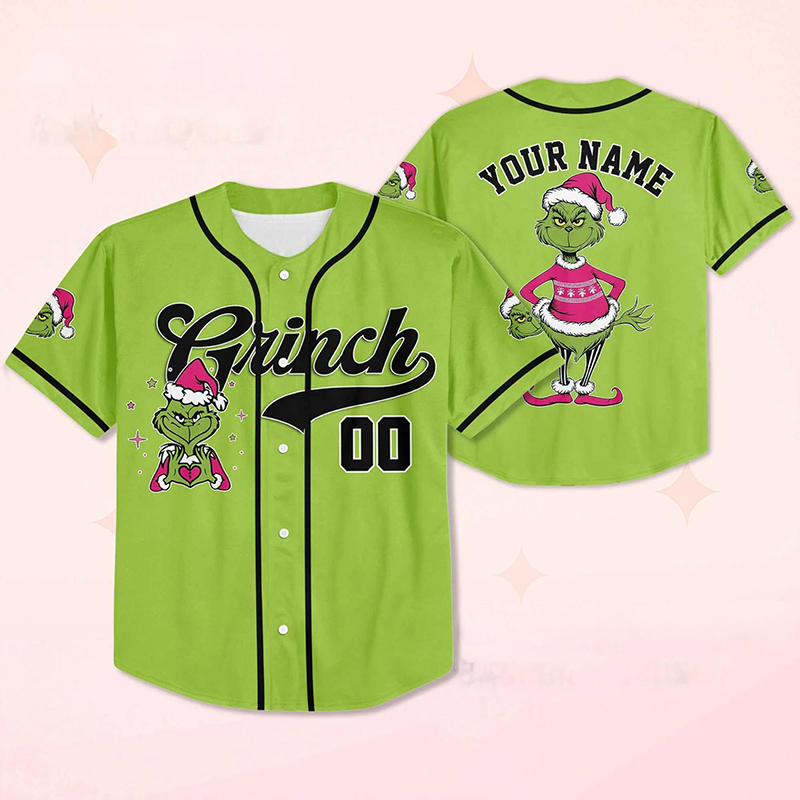 Personalized Name And Number Mean Guy Pink Santa Hat Teacher Baseball Jersey