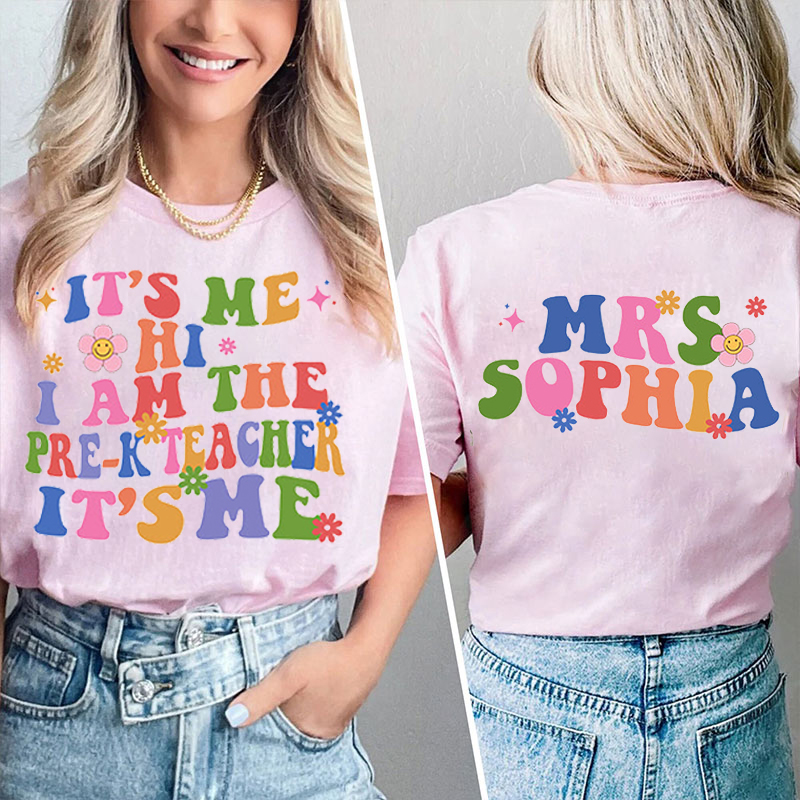 Personalized Name And Text It's Me Teacher Two Sided T-Shirt