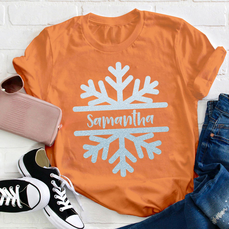 Personalized Name Christmas Snowflake Teacher T-Shirt
