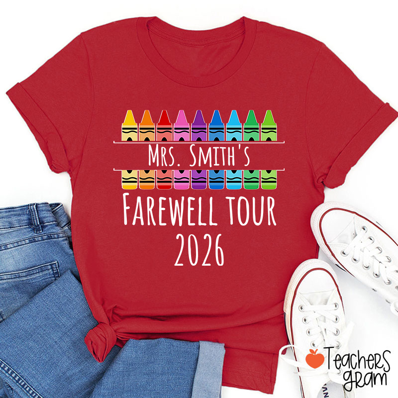 Personalized Name Farewell Tour Crayon Teacher T-Shirt