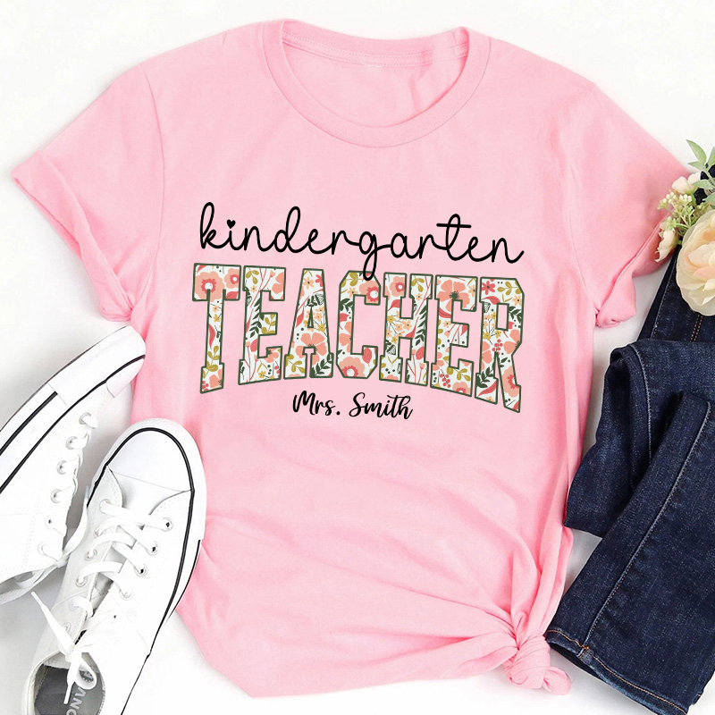 Personalized Vintage Flower Teacher Name Position Teacher T-Shirt