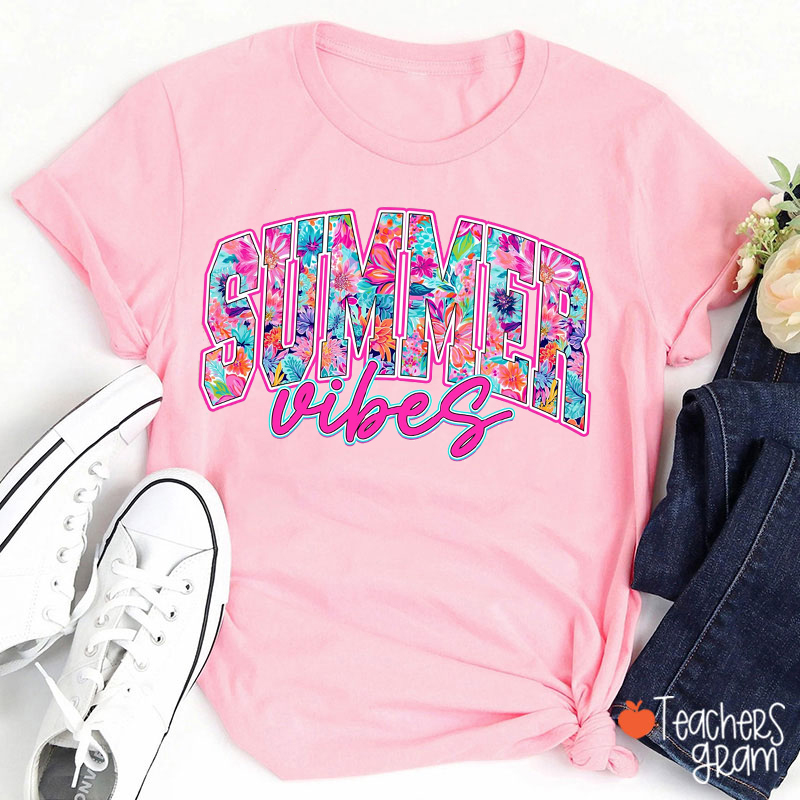 Preppy Summer Vibes Teacher T-Shirt