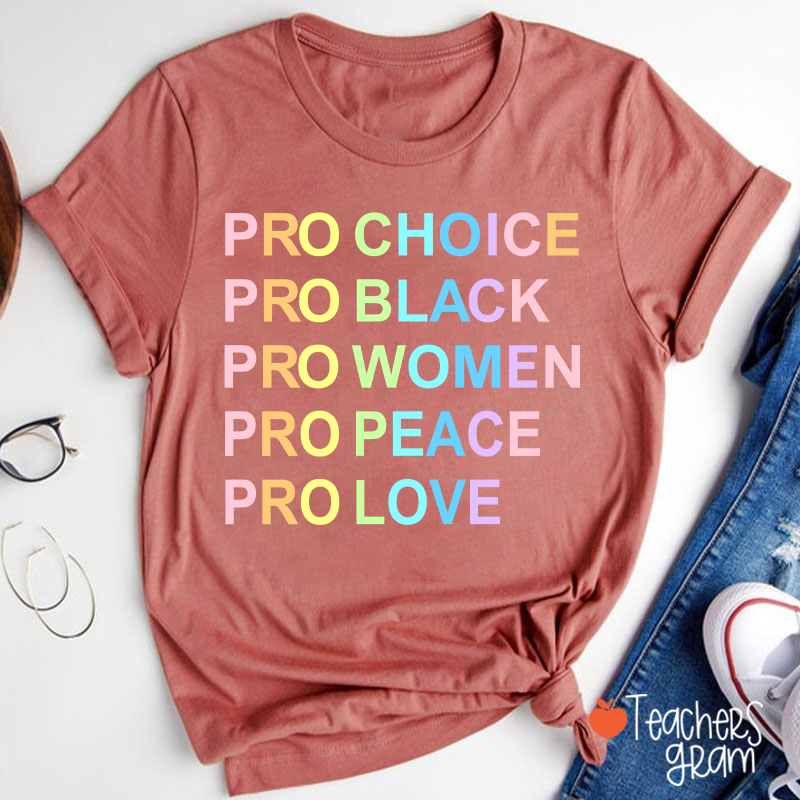 Pro Choice Pro Black Pro Women Pro Peace Pro Love Teacher T-Shirt