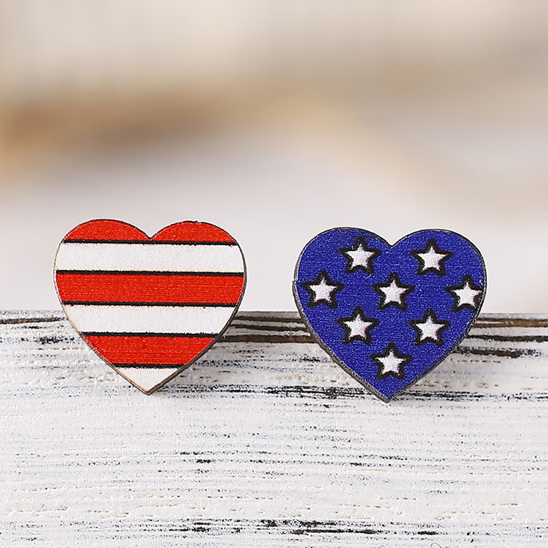 Pentagram Heart Shaped American Flag Teacher Wooden Earrings