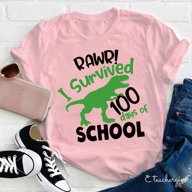 Rawr I Survived 100 Days Of School Teacher T-Shirt