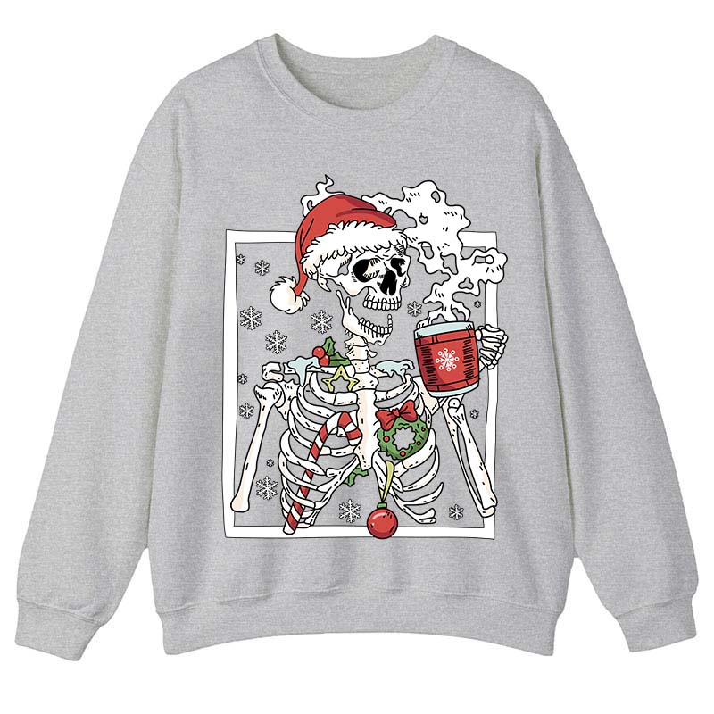 Skeleton With Smiling Skull Drinking Coffee Latte Teacher Sweatshirt