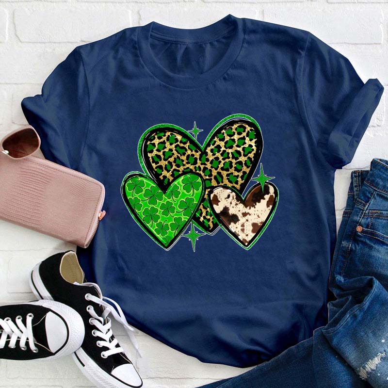 St.Patricks Leopard Heart Teacher T-Shirt