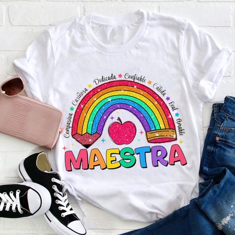 Teach Love Inspire Rainbow Pencil Spanish Teacher T-Shirt