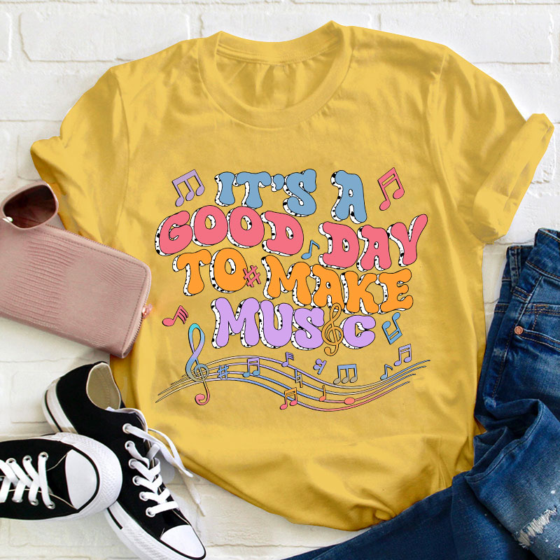 Tt's A Good Day To Make Music Musical Note Printing Teacher T-Shirt