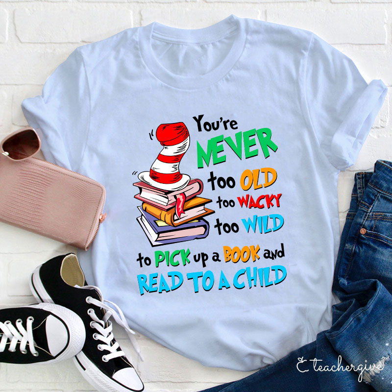 You're Never Too Old Too Wacky Too Wild To Pick Up A Book And Read To A Child Teacher T-Shirt